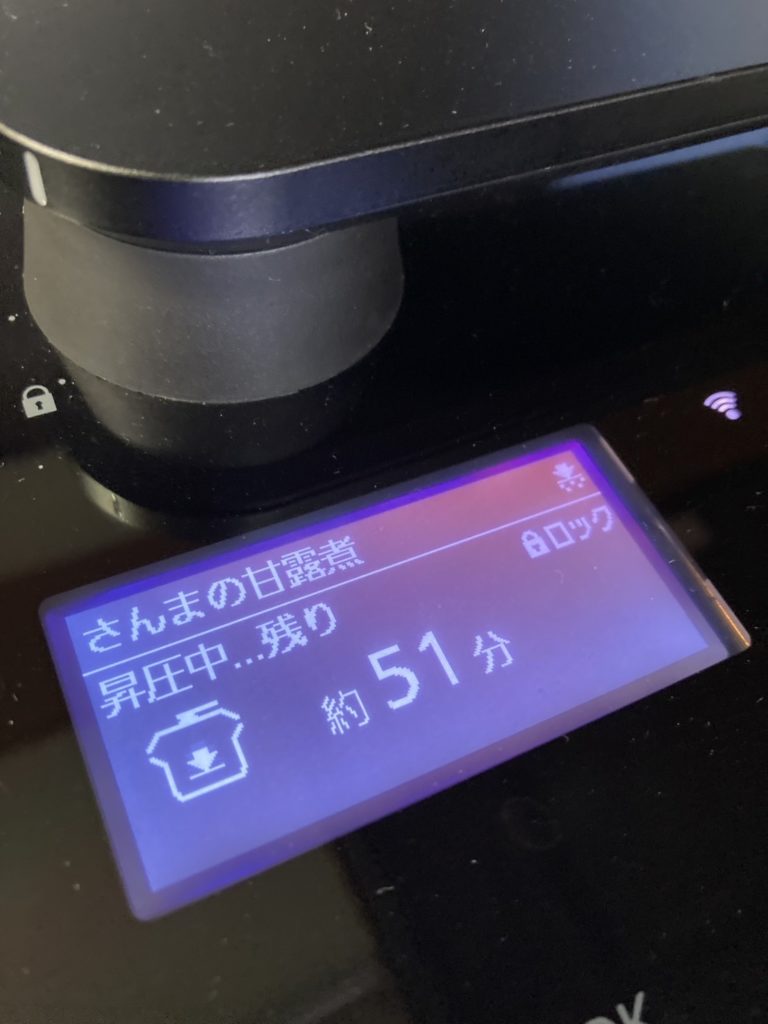 51分後には美味しそうな飴色の秋刀魚の甘露煮が出来上がりました。